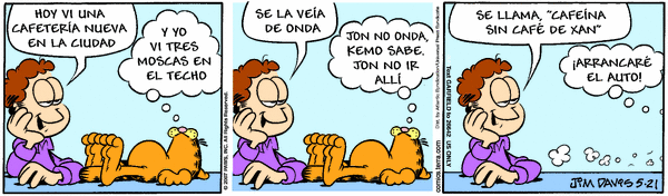 Hoy me he levantado a las 6 y cuarto de la mañana. En estos momentos veo la tira de Garfield de hoy. Me siento Garfield….