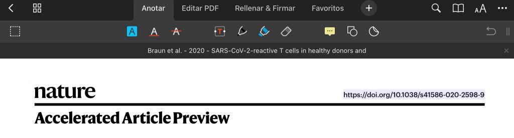 En el ejemplo de esta captura, simplemente busqué «Braun» para localizar el artículo. Una vez abierto, con el Apple Pencil puedo subrayar, anotar, dibujar, garabatear, insultar a los autores cuando corresponde… todas esas cosas. Y cuando cierro el pdf, se sincroniza todo y ya puedo abrirlo en el MacBook cuando quiera.