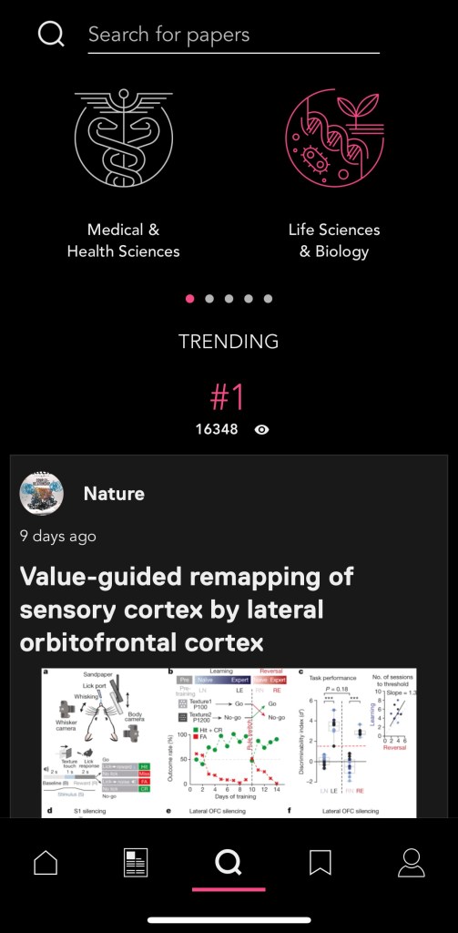 Aunque en el pasado utilizaba frecuentemente las alertas de Pubmed para mantenerme informada sobre los temas que me interesaban, en estos momentos eso ya no es suficiente. Los artículos tardan demasiado en llegar allí. Ahora utilizo ResearcherApp. Aunque tiene versión web, lo que utilizo a diario es la aplicación móvil, de forma que cada mañana, con mi café en la mano, pueda revisar lo que ha ocurrido en las últimas horas. Tengo varios filtros para palabras clave y además, reviso frecuentemente los temas más calientes en varias disciplinas.